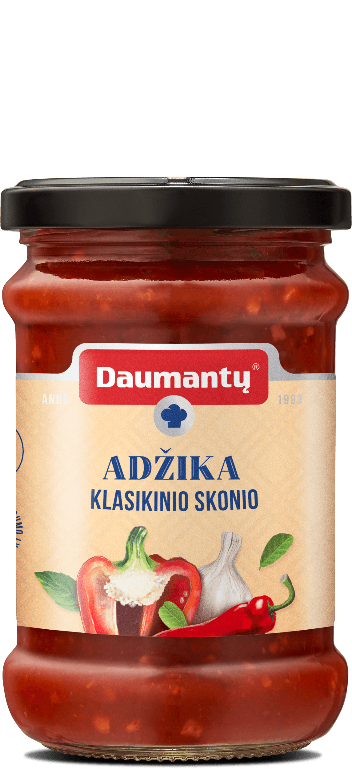 Šio produkto pagrindas yra tiršta pomidorų ir aitriųjų paprikų masė su česnakais ir kruopščiai atrinktomis prieskoninėmis žolelėmis. Adžika pasižymi saldžiai aštriu skoniu ir yra labai aromatinga.