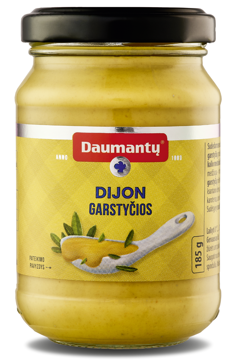 „Daumantų“ DIJON garstyčiomis suteiksite savo patiekalams išraiškingo skonio – jos puikiai tinka ir kaip pagardas, ir kaip marinatas.